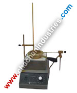 This Apparatus is used for determination of distillation characteristics of petroleum Products. The instrument consists of metal shield to support distillation flask. |